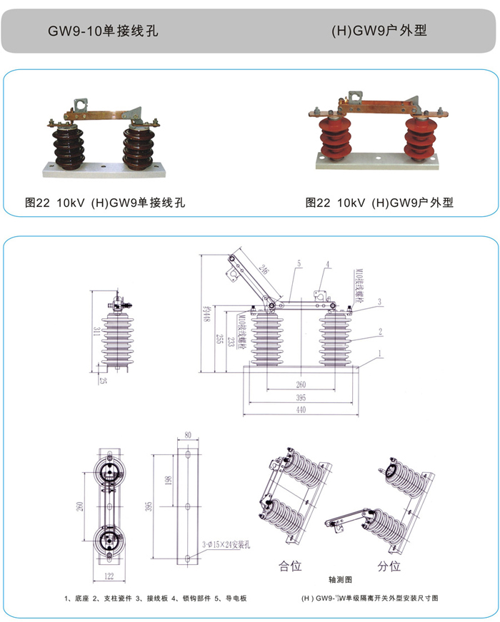 GW9-10/15型隔離開關(guān)按防污等級來分有2種:GW9-10和GW9-10W按電流分:有200A 400A 630A 800A 1000A 1250A、按電壓分:有10KV 15KV。
