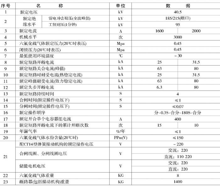 a.開斷性能優良,燃弧時間短,電壽命長,在額定電壓下連續開斷25千安20次不檢修,不更換六氟化硫氣體;