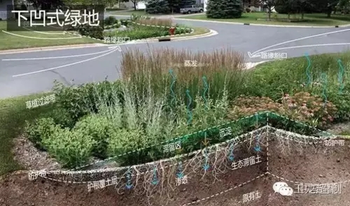 雨水花園是自然形成的或人工挖掘的淺凹綠地,被用于匯聚并吸收來(lái)自屋頂或地面的雨水,通過(guò)植物、沙土的綜合作用使雨水得到凈化,并使之逐漸滲入土壤,涵養(yǎng)地下水。
