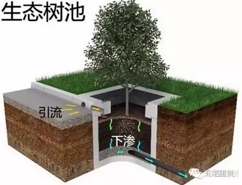 在對(duì)于通行或樹蔭要求較高的區(qū)域可將單個(gè)的樹池作為一個(gè)生態(tài)滯留單位。